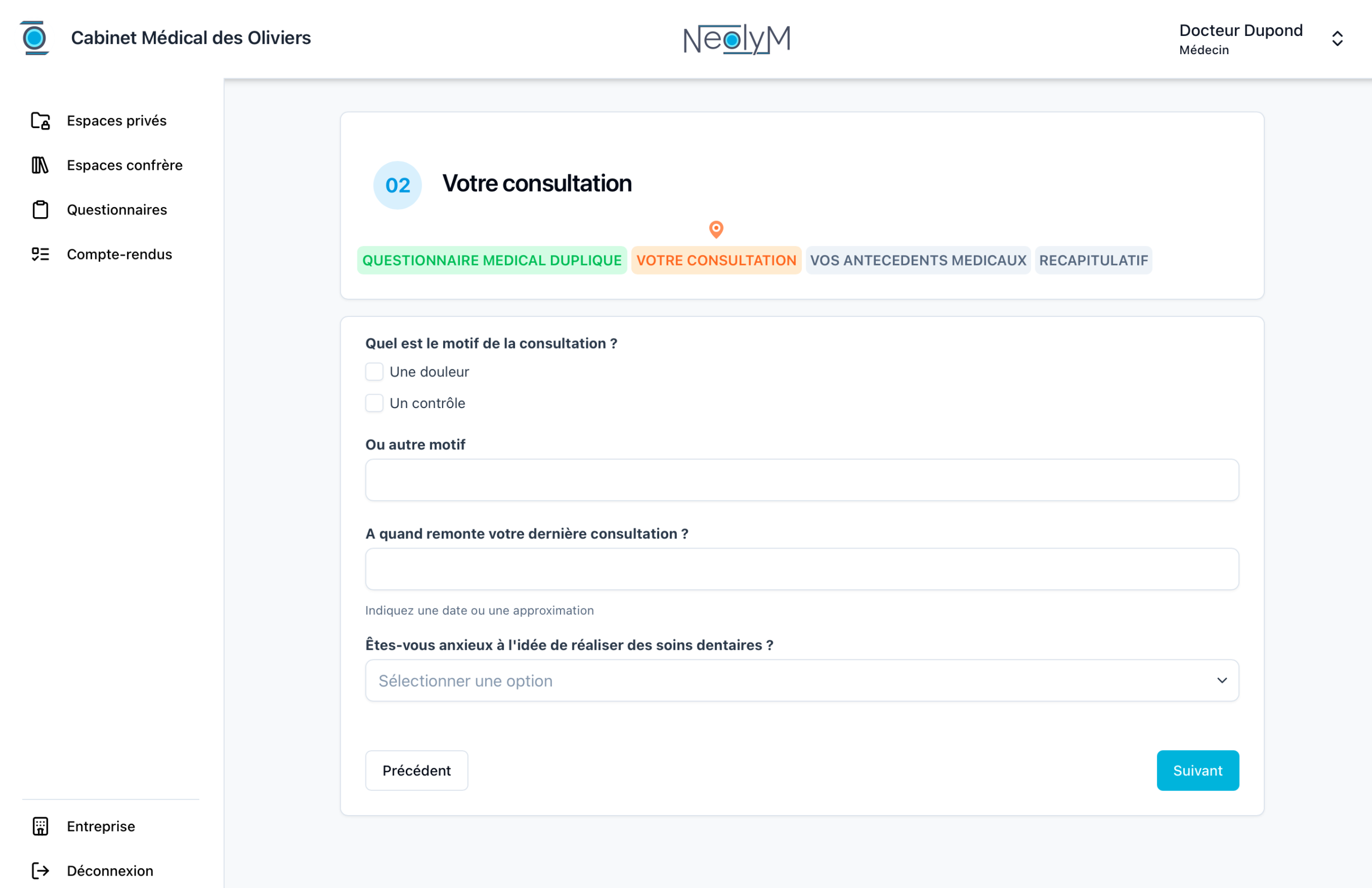 J’utilise Neolym au quotidien pour recueillir les questionnaires de santé de mes nouveaux patients et en conserver une trace formelle signée. Pour les devis, c’est un vrai gain de temps : j’envoie des rappels avec des informations claires sur les actes proposés. Grâce à l’interface, je maîtrise parfaitement les contenus partagés, et mes patients retrouvent facilement les informations données en consultation.